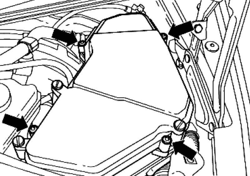 Снимите уплотнение моторного отсека и планку в области усилителя тормозов.
